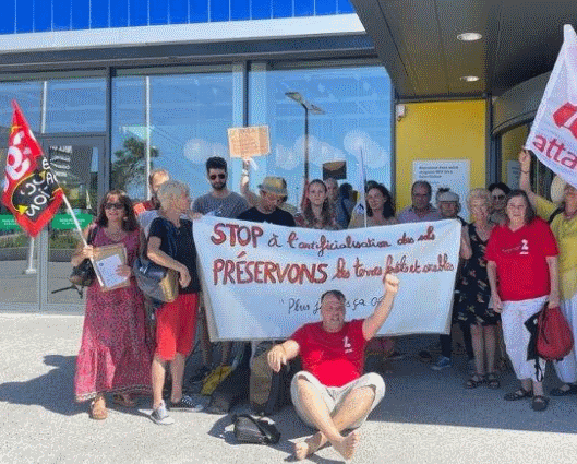 Ainsi que nous l’avions annoncé, le collectif “Plus jamais ça”, auquel participe la CGT Éduc’Action, a organisé ce samedi 25 juin 2022, une action d’information contre l’artificialisation des sols et des terres fertiles