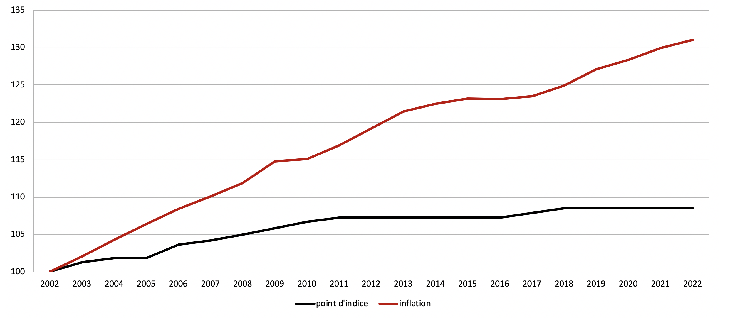 Évolution du point d’indice et de l’inflation :