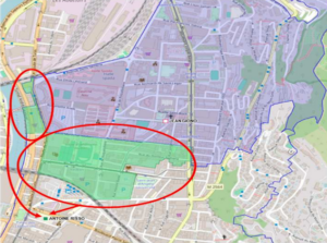 M. Goldinger présente la modification de sectorisation proposée pour le collège Giono : les deux secteurs en vert ci-dessous dépendent actuellement de Giono et la proposition est de les basculer vers Risso dès la rentrée prochaine.
