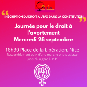 TOUTES ET TOUS DANS LA RUE LE 28 SEPTEMBRE 2022 JOURNÉE INTERNATIONALE POUR LE DROIT À L’AVORTEMENT, et sa reconnaissance en actes