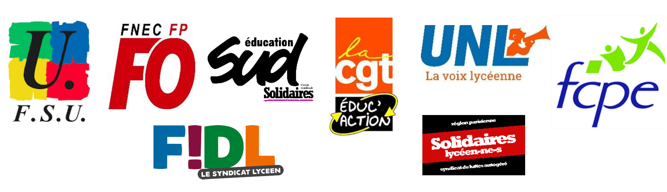 Les organisations FSU, FNEC FP-FO, Sud Education, CGT Educ’action, FCPE, UNL, Solidaires lycéens et FIDL condamnent toutes les formes de remise en cause des libertés démocratiques et syndicales. Elles condamnent fermement la répression dont ont été victimes certains lycéens cette semaine, mobilisés sur leurs revendications.