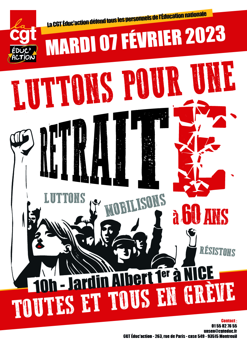 Retraite : 07 Février 2023 Manifestation unitaire 10h Jardin Albert 1er
