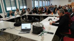 | L’arrivée d’une partie des GO du stage | Une salle attentive | Maryvonne, responsable de la section retraité·es de la Cgt Educ |