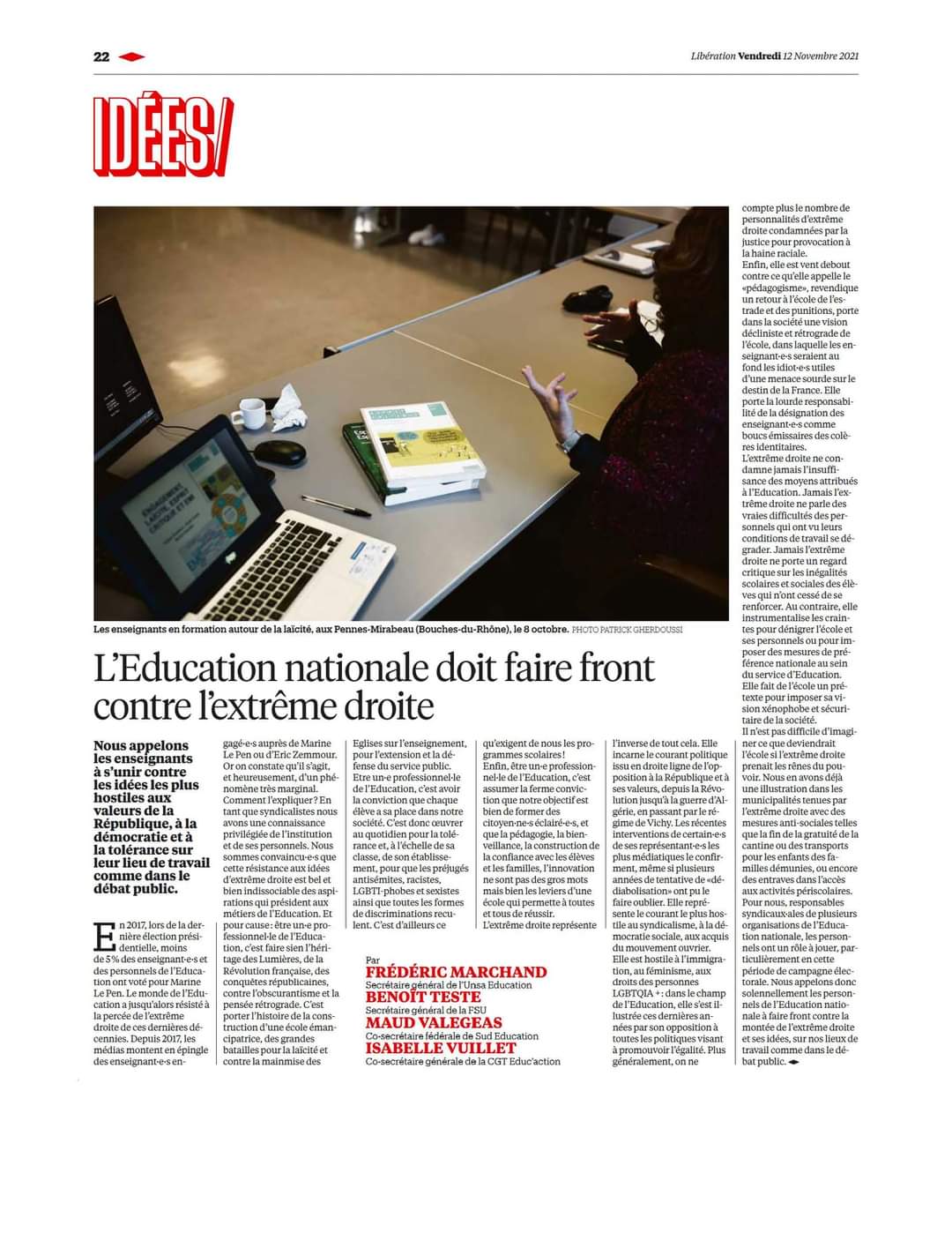 Tribune contre les idées d’extrême droite dans l’Éducation nationale